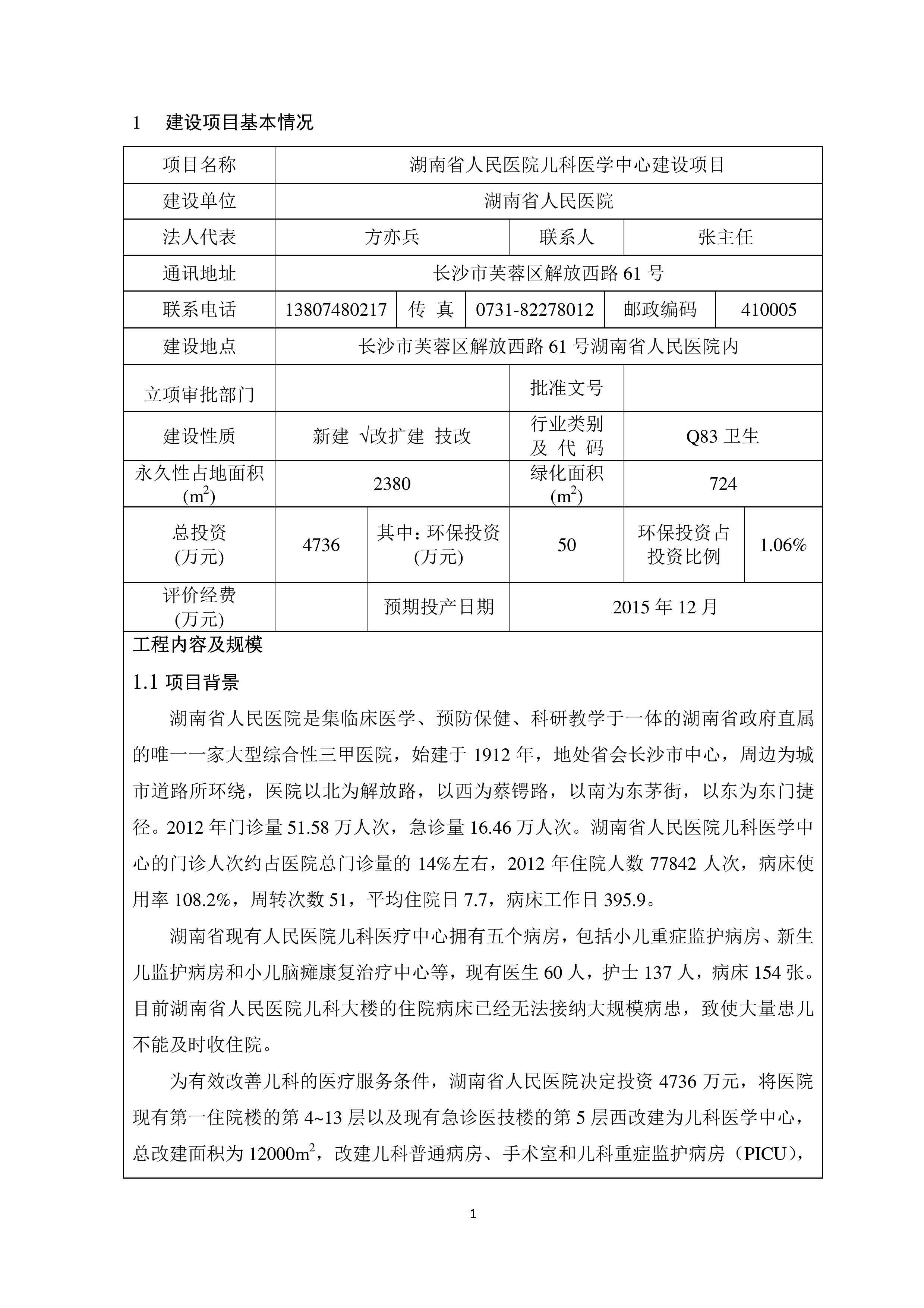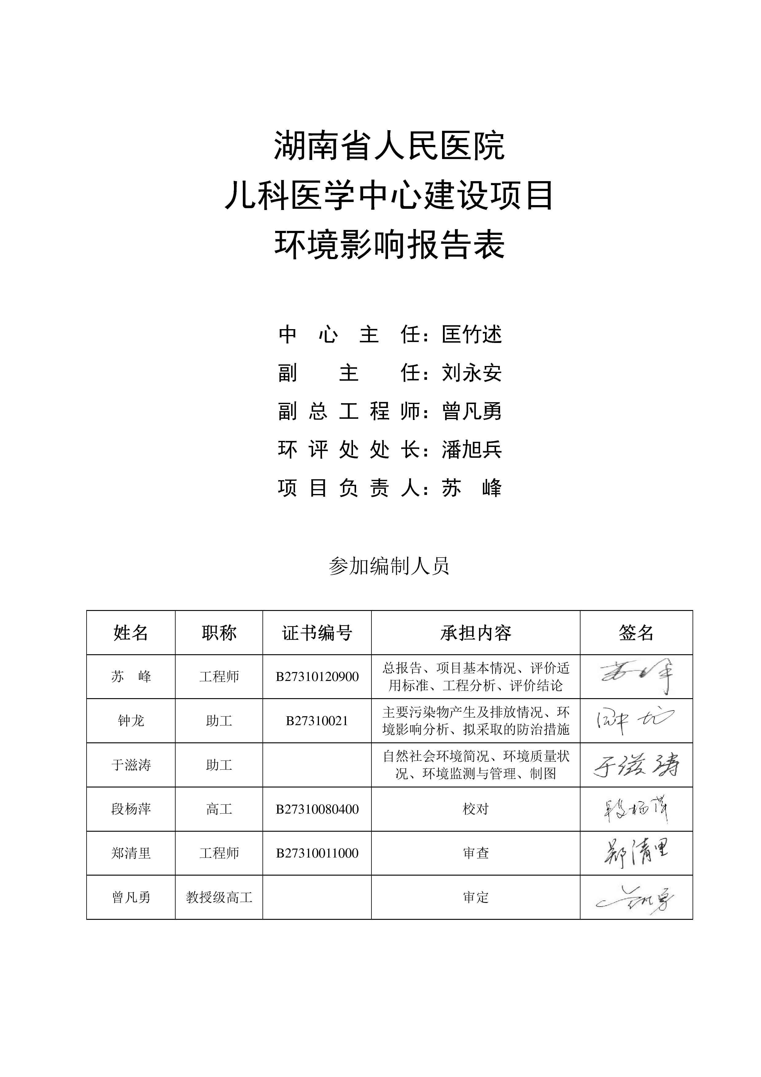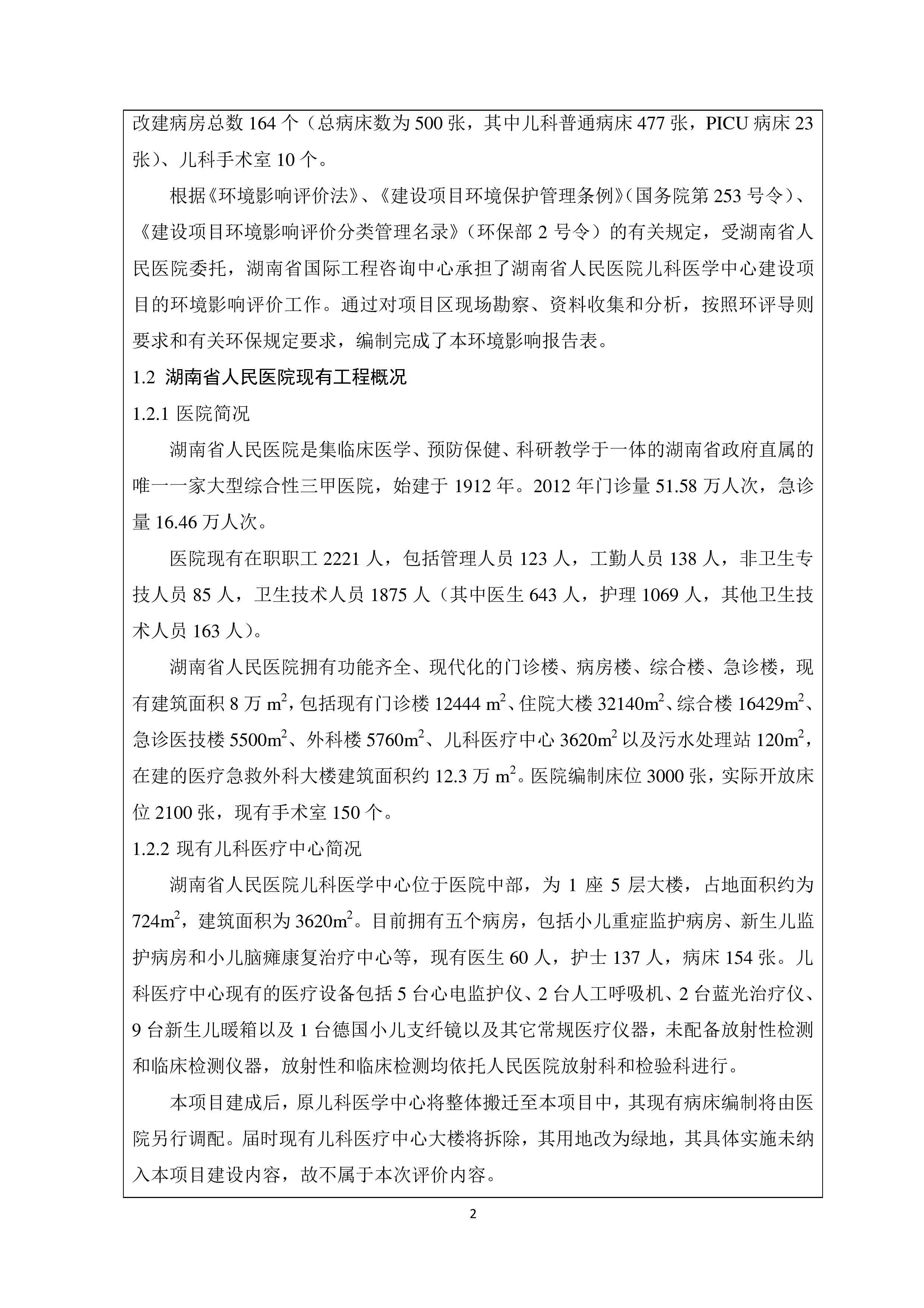 湖南省人民醫(yī)院兒科醫(yī)學中心建設項目環(huán)境影響報告表(送審稿)