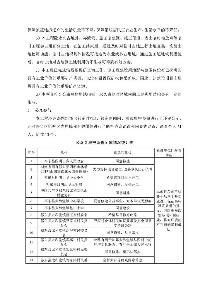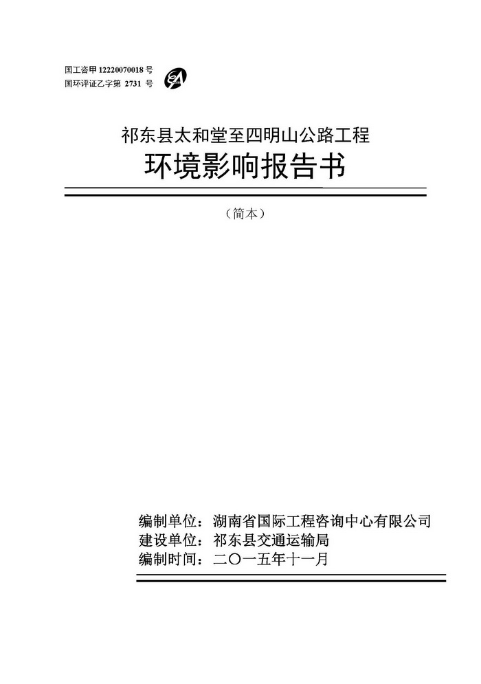 祁東縣太和堂至四明山公路工程環境影響報告書
