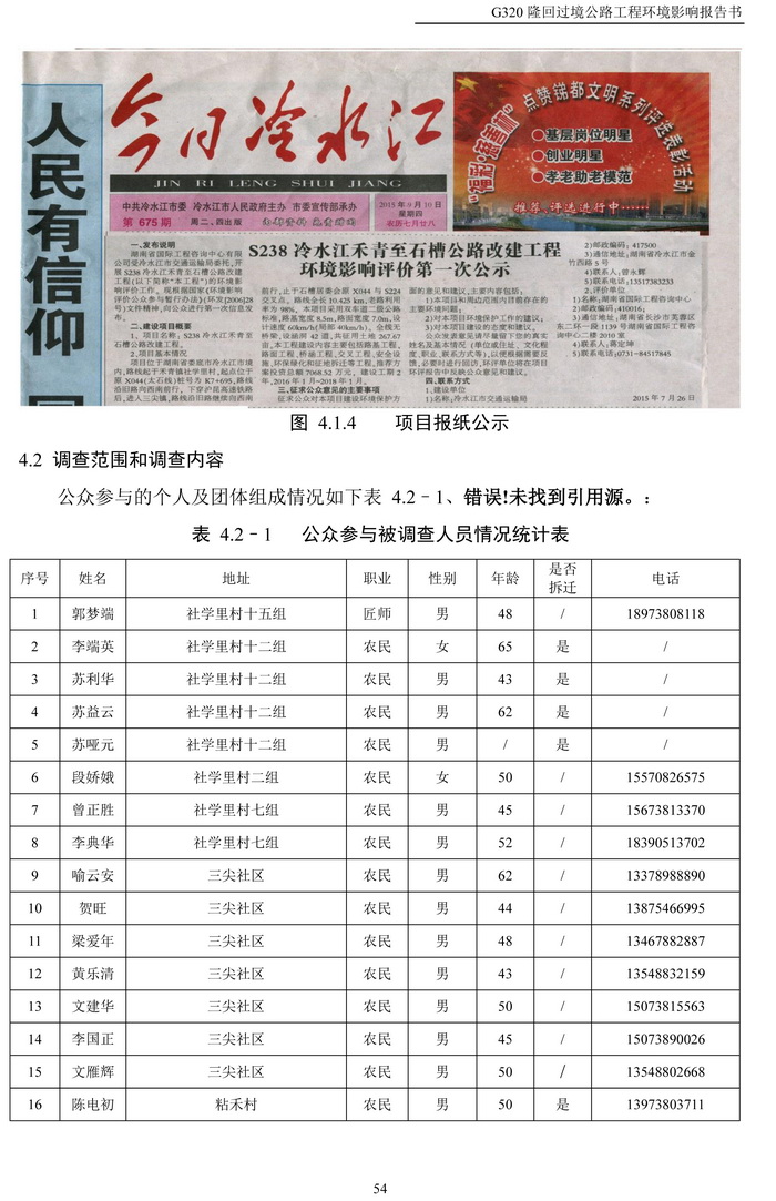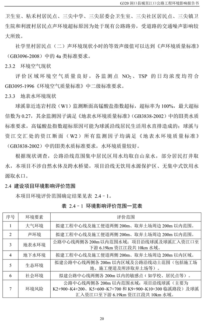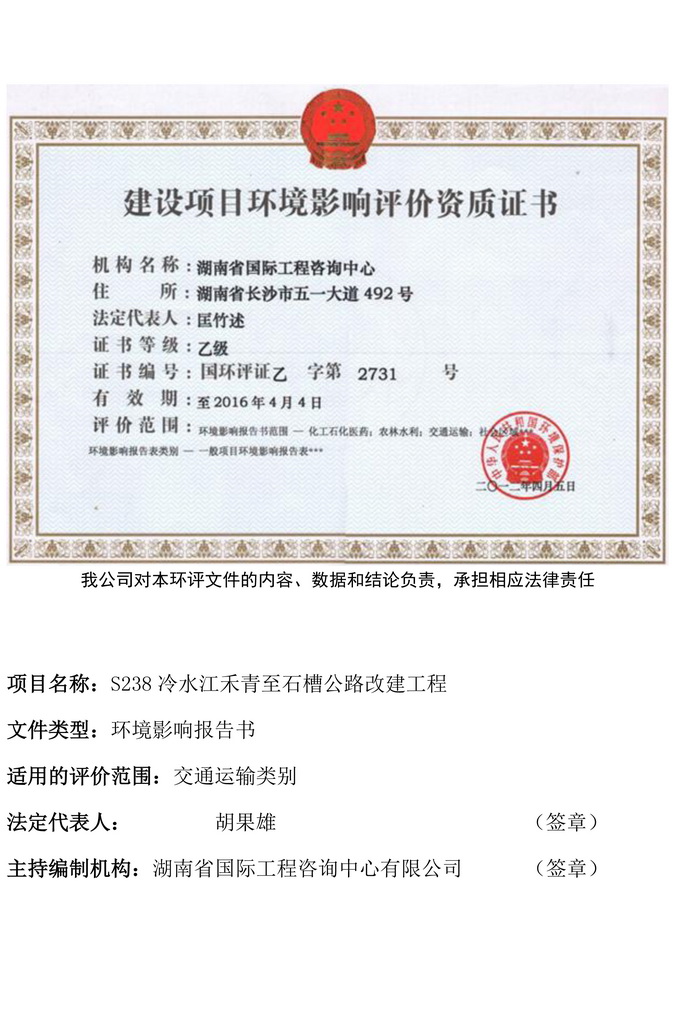 S238冷水江禾青至石槽公路改建工程環評公示(簡本)