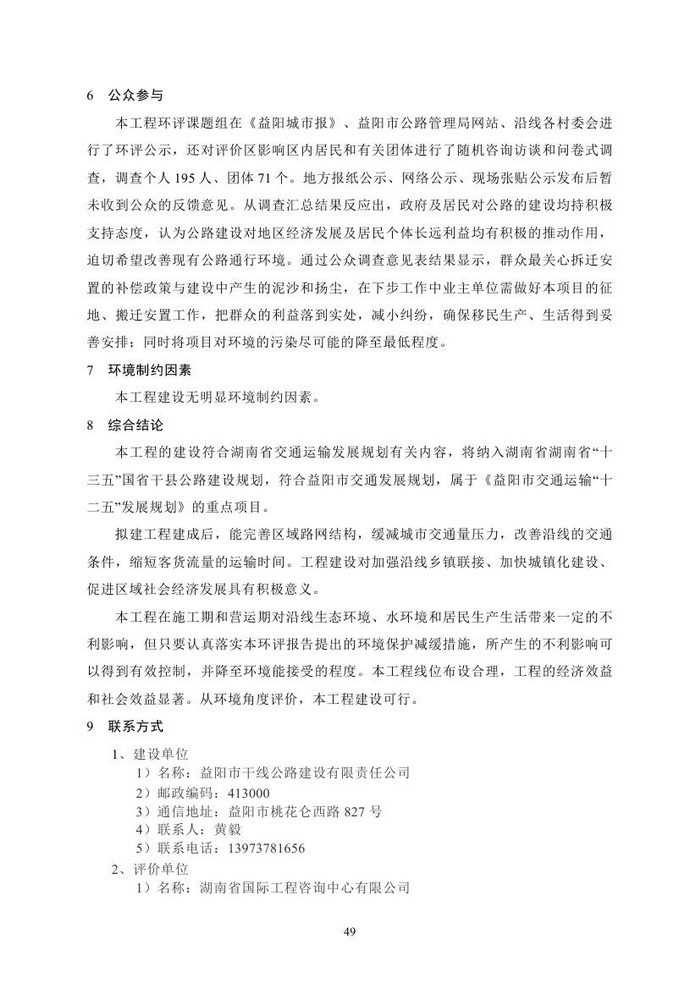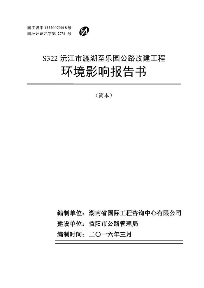 S322沅江市漉湖至樂園公路改建工程環境影響報告書(簡本)