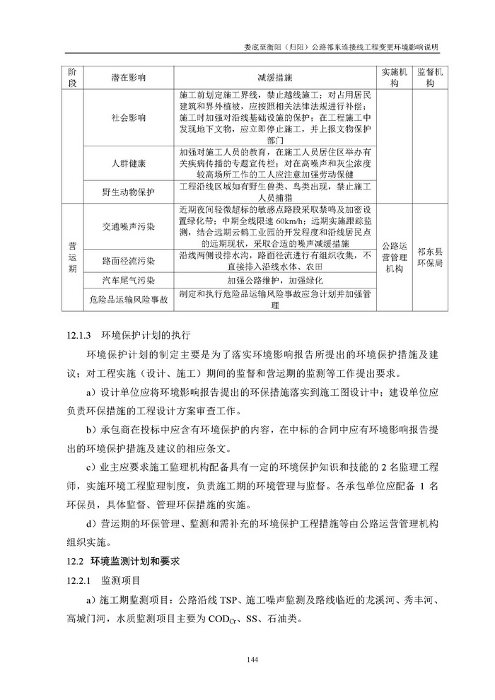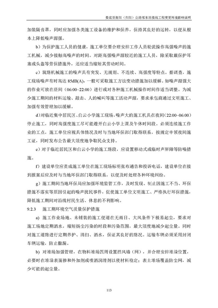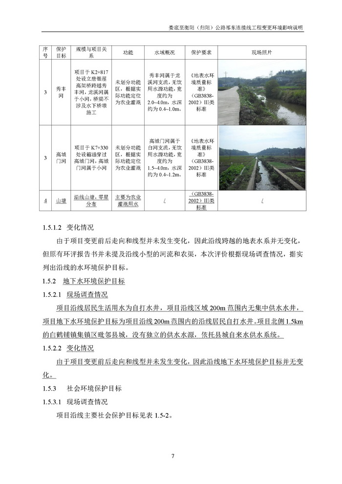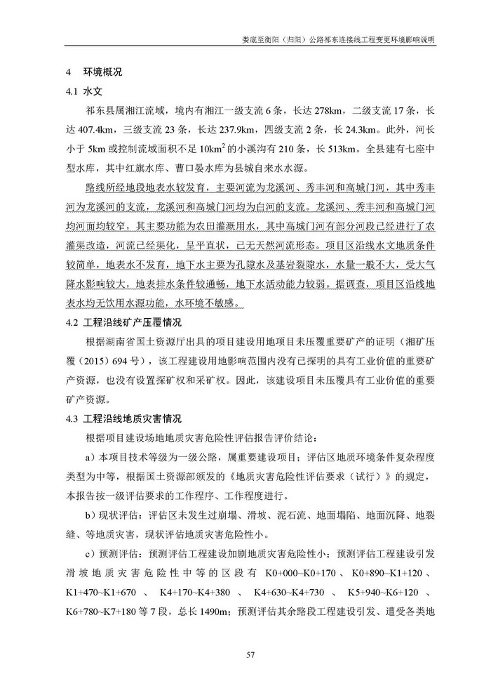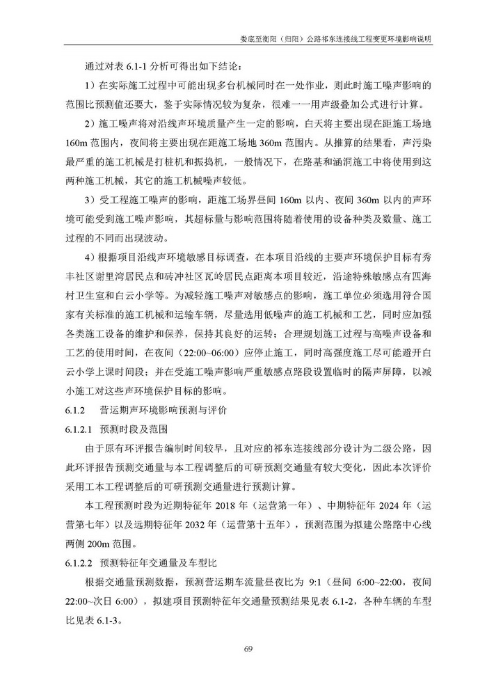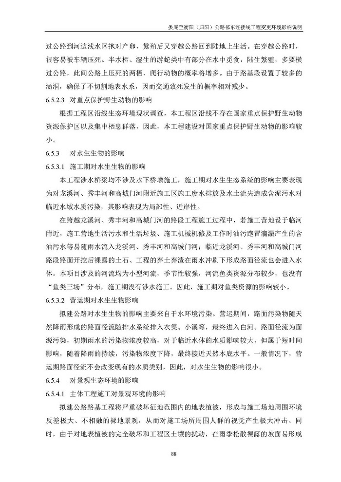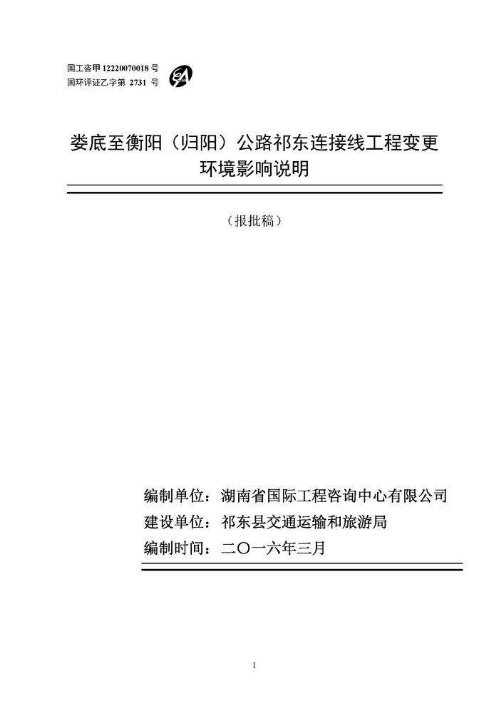 婁底至衡陽(歸陽)公路祁東連接線工程變更環境影響說明(報批)