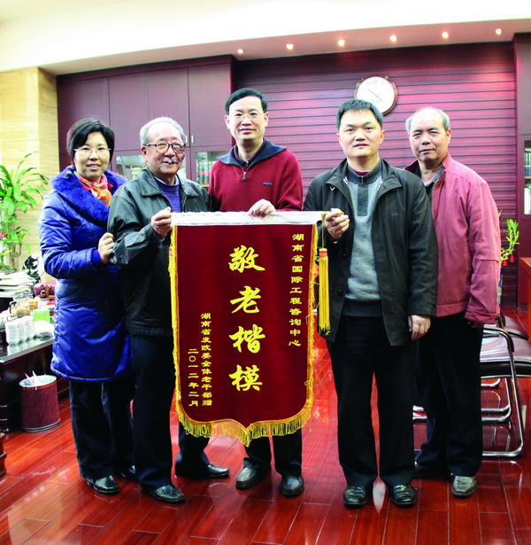 3月2日,省發(fā)改委機關離退休老干支部書記屈運炳等老領導,在省發(fā)改委離退處處長何祖青、副處長卜安春的陪同下來到中心,代表省發(fā)改委全體老干部將一面寫有“敬老楷模”的錦旗送到省發(fā)改委黨組成員、中心黨委書記、主任匡竹述手中,以感謝中心長年來對老干部的關心和照顧。
