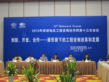 2012年10月10日,西部地區(qū)工程咨詢協(xié)作網(wǎng)第十三次會(huì)議在成都召開。來自西部地區(qū)的13家成員單位,以及國家發(fā)改委國家投資項(xiàng)目評審中心、中國國際工程咨詢公司等23家綜合性工程咨詢單位的特邀代表參會(huì)。中心黨委委員、總工程師王沛皇參加了會(huì)議。