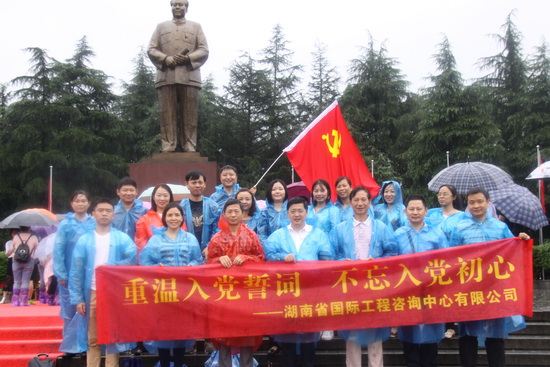 為慶祝中國共產黨建黨96周年,激勵廣大黨員堅定理想信念,牢記黨的宗旨,加強黨性教育,樹立“四個意識”,改進作風建設,進一步推進“兩學一做”學習教育深入開展,提升黨組織的號召力、凝聚力和戰斗力。6月29日,省咨詢公司第一黨支部和第八黨支部聯合組織開展了赴偉人故里韶山“重溫入黨誓詞、不忘入黨初心”的黨員主題活動。公司領導詹瓊雷、曾凡勇、胡興國、謝盛文、肖艷菊,黨群工作部負責人、第一黨支部和第八黨支部全體黨員,以及支部的入黨積極分子參加了此次活動。