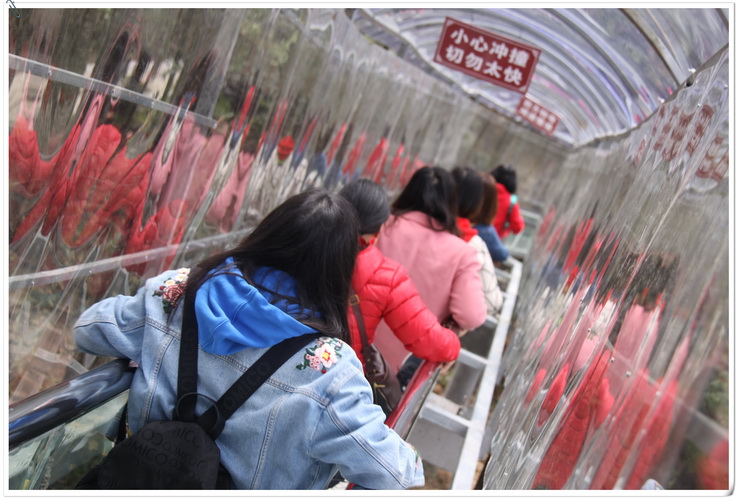 跨越玻璃橋后,大家便乘坐長度近350米、懸空落差達100米的玻璃滑道下山,體驗后的姑娘們紛紛大呼“過癮”。