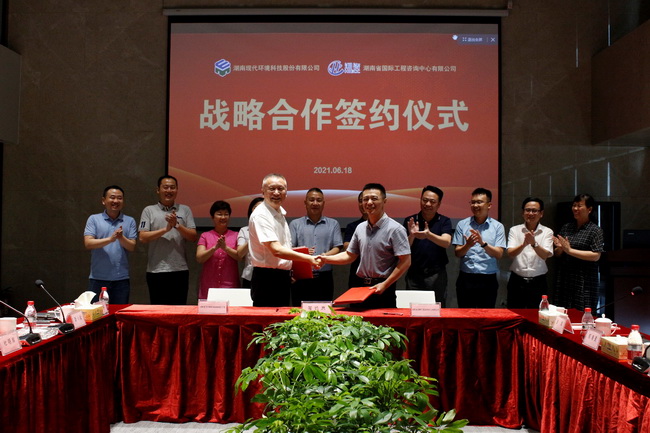 6月18日下午,湖南省國際工程咨詢中心有限公司與湖南現(xiàn)代環(huán)境科技股份有限公司(以下簡稱“現(xiàn)代環(huán)科”)在現(xiàn)代環(huán)科多功能會議室舉行戰(zhàn)略合作簽約儀式。