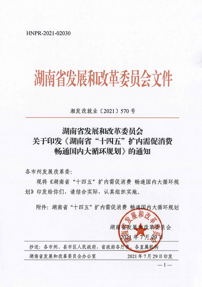 2021年8月17日,省發展改革委正式發布由省咨詢公司承擔編制的《湖南省“十四五”擴內需促消費 暢通國內大循環規劃》(下稱《規劃》)。