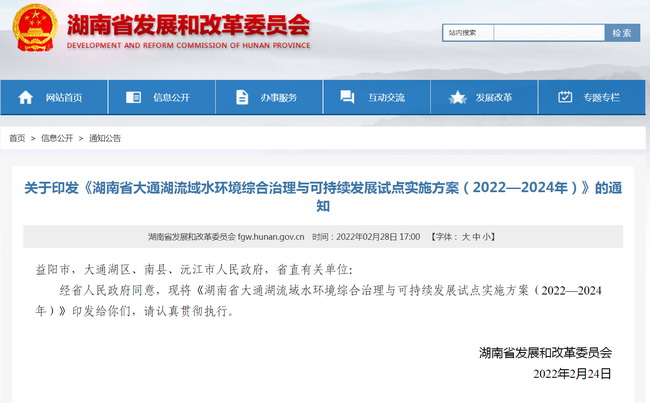 近日,按照國家發展改革委部署,經湖南省政府同意,湖南省發展改革委近日印發了《湖南省大通湖流域水環境綜合治理與可持續發展試點實施方案(2022—2024年)》(下稱《實施方案》)。《實施方案》系省咨詢公司生態規劃咨詢部編制。